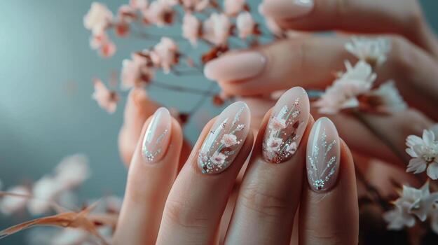 24pcs Fashion Rhinestone Press on Nails Tips with Pearl Design Long Almond False Nail Art Fishtail Pattern French Fake Nail Sets